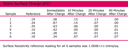 resistivity/resistence meter in direct contact with the sample. Static surface charge reading was taken with the static field meter at