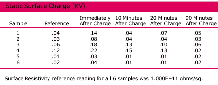 resistivity/resistence meter in direct contact with the sample. Static surface charge reading was taken with the static field meter at