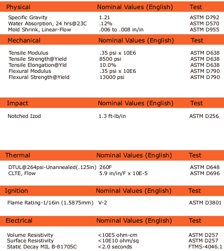 Pozzetta ESD300 Black Polycarbonate Static Dissipative Material Data
