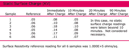 Each sample was charged, after initial readings, by the identical pattern of passing a vinyl