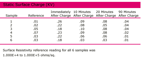 dragging across the sample. The static surface charge reading was recorded