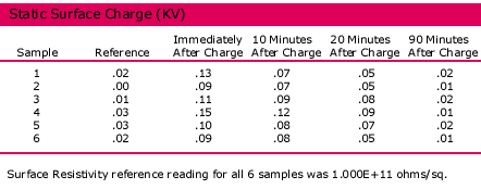 meter in direct contact with the sample. Static surface charge reading was